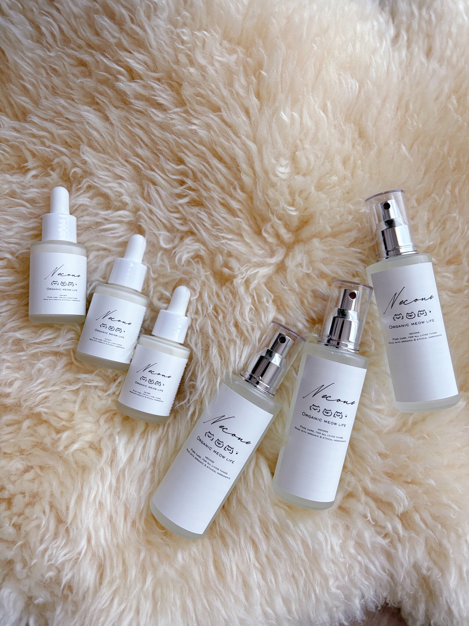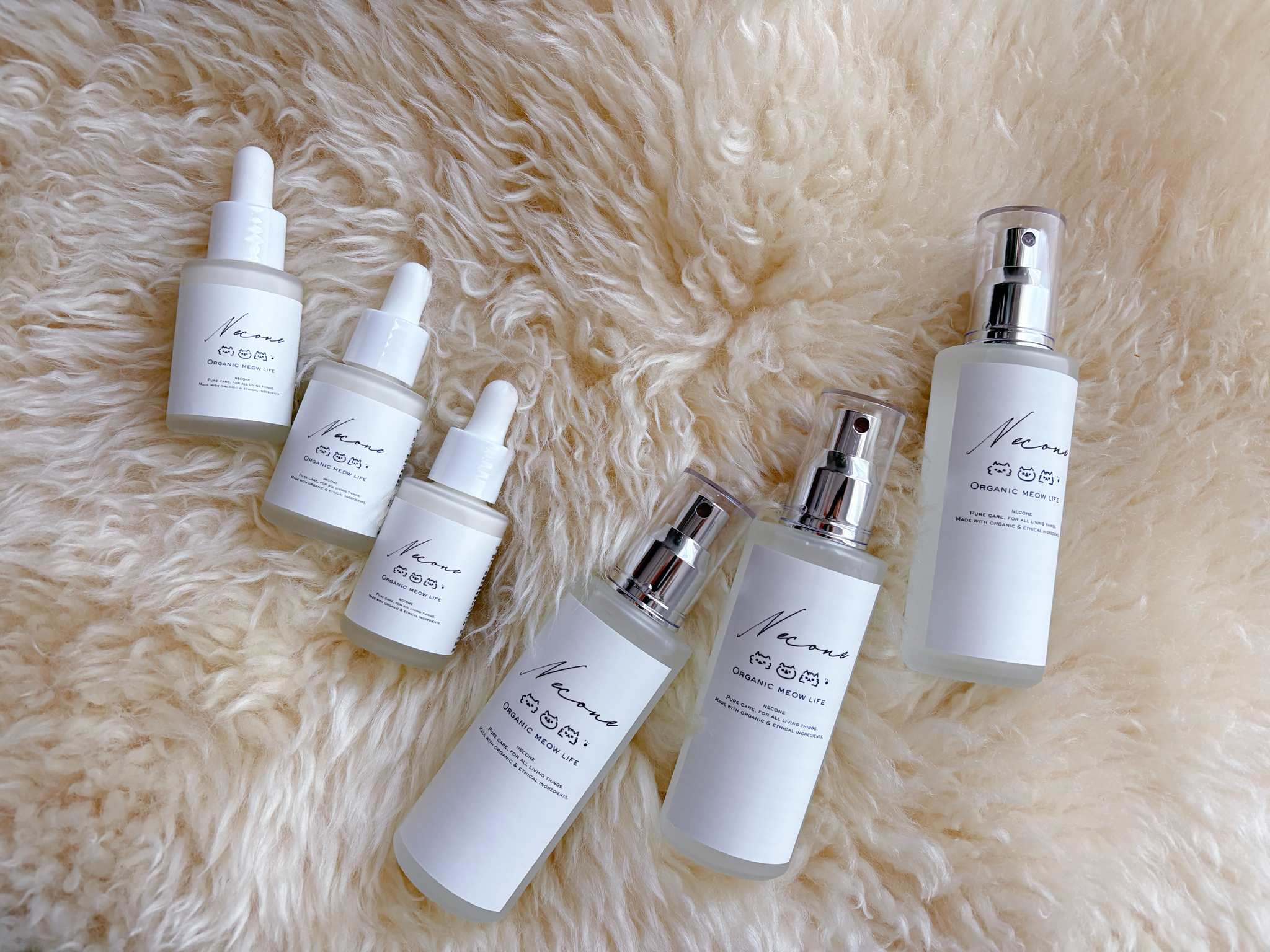 neconeオリジナルスキンケアアイテムは、精油を使わず、猫にとっても禁忌になりにくい植物成分だけを選びました。